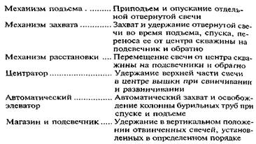 механизацию установки свечей на подсвечник и вынос их кцентру, а также захват или освобождение колонны бурильных труб автоматическим элеватором.