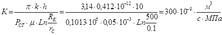 Зная коэффициент проницаемости k мы можем по формуле (5.12) определить коэффициент продуктивности К: