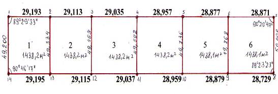 P6=P1+P2=1/2*49,8687*28,87*sin89°29'33"+1/2*50,00*28,73*sin89°23'23"=1438,0м2