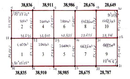 Решая прямую геодезическую задачу, находим координаты поворотных точек всех земельных участков кварталов.