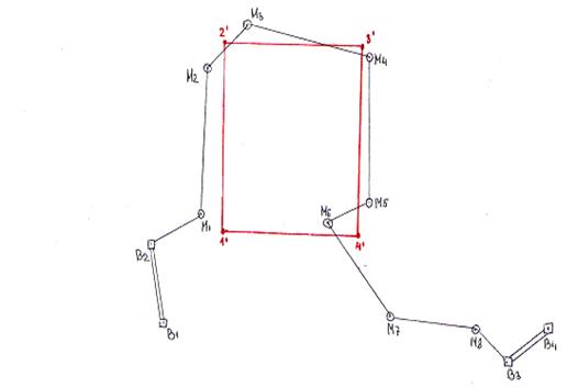 Для выноса в натуру поворотных точек 1', 2', 3', 4' квартала секционной застройки был проложен теодолитный ход таким образом, чтобы расстояние от точек хода до поворотных точек было не более 100м, а расстояние между точками хода - не более 300 м