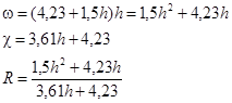 Определение размеров поперечного сечения сводится к определению ширины по дну и глубины наполнения по заданным параметрам (расход Q, уклон i, коэффициенты шероховатости n и заложения откосов m). При расчетах используется рациональное соотношение β между шириной канала по дну и глубиной наполнения.