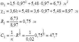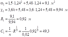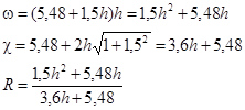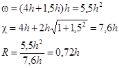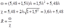h=0,84 м ω=1,5h2+5,48h=5,66м2 R=0,67 м.