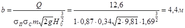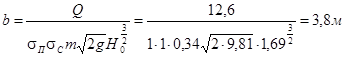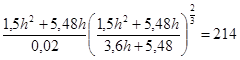 h=1,37 м b=4h=5,48 м ω=5,5h2=10,32 м2.