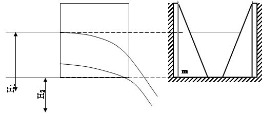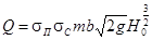 Для щелевых водосливов коэффициент расхода m≈0,48, коэффициент сжатия σс=0,95