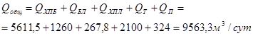 Общие размеры водопотребления определяются как сумма расходов воды по всем видам водопотребления: