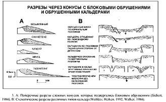Последующие блоковые обрушения и латерально растекшийся материал обрушений будут обнажены на дневной поверхности в первичном виде. Так, например, в 1980 году в результате блокового обрушения на вулкане Сан Хеленс во время извержения было удалено 2.3 км3 материала и образован большой амфитеатр с крутыми обратными стенками. Блоковое обрушение над гидротермальной системой внезапно уменьшает ограничительное давление в системе, которое может привести к гидротермальному брекчированию, кипению и рудообразованию. Эти эффекты аналогичны эффектам, обусловленным возобновляемым магматизмом, механизм этих процессов разный. Здесь происходит уменьшение ограничительного давления, а не увеличение температуры. Внезапное падение давления может произвести такой же эффект на гидротермальную систему, как и быстрое разогревание, что сопровождается резким снижением точки кипения гидротерм в системе при данных глубинных условиях. Однако в этом случае температура будет понижаться, а не повышаться, приводя к ретроградному наложению. Наоборот, обрушение кальдер, по-видимому, может привести к прогрессивному наложению.