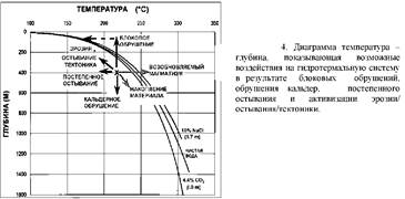 Многие гидротермальные системы располагаются в районах активного подъёма и тектонизма и, возможно, это приводит систему к подъёму и эродированию на значительную глубину в течение её деятельности. Постепенные изменения, вследствие подъёма и падения температур в угасающей гидротермальной системе, будут продуцировать ретроградное наложение, или телескопирование, как обсуждалось Sillitoe и описано детально в главе 5.0. Такое телескопирование, вследствие постепенного подъёма, обычно не будет приводить к рудообразованию, но рудная минерализация может формироваться в результате внезапных изменениях давлений, сопровождающих тектоническую активность. Рудная минерализация и ретроградное наложение гидротермальных изменений на месторождении Поргера могло быть обусловлено внезапными повторными изменениями давлений, связанных с тектонической активизацией во время подъёма и эрозии мезотермальной системы.
