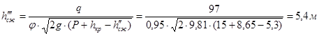 Таким образом находим требуемые параметры в конце быстротока при известным данным: