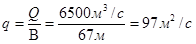 Q=6500м3/с; Bнач=67 м;