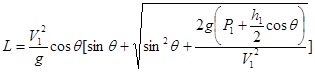 Дальность отлета струи L, отброшенной с трамплина водослива, до встречи со свободной поверхностью нижнего бьефа определяется по формуле: