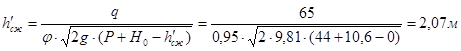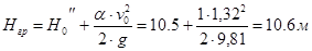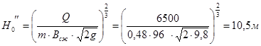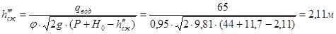 - коэффициент скорости, который для водослива с трамплином находится по формуле