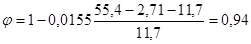 Т - превышение уровня верхнего бьефа над уровнем воды нижнего бьефа (Т = 55,4 м);