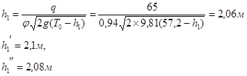 W1= 0,5xγwx ( (H1-Ht) - H4) xadr=0,5x1x ( (71,2-10) - 20) x10 = 206 т/м