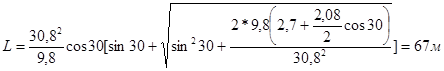 Аэрация сказывается на ее толщине и дальности отлета. Для учета влияния аэрации и распада струи рекомендуется значение L принимается равной L*k=*= м, где k - поправочный коэффициент, величина которого находится по графику (рис.2б) в зависимости от числа Фруда для сечения уступа.