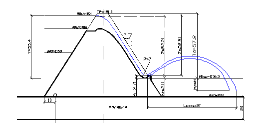 B=113 м Hпл=73,5 м mt=mu=0,7