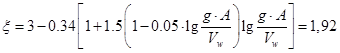 в которой параметр А равен меньшему значению из величин (L/Vw) или (0,5 t); Vw - расчетная скорость ветра, м/с; g - ускорение свободного падения, м/с2; L - расчетная длина разгона волн, м; t - продолжительность действия ветра, принимаемая для предварительных расчетов t= 21600 с. Средний период волны (Т, с)