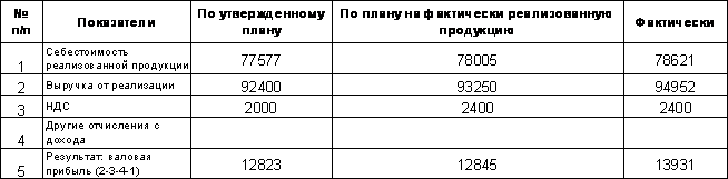 Планом за отчетной год предполагалось уменьшение прибылей от реализации продукции относительно минувшего года на 217,0 тыс. грн. в результате запланированного уменьшения объема реализации продукции с 91661,0 тыс. грн. в минувшем году до 90400,0 тыс. грн., в отчетном. Однако, фактическая величина этого показателя оказалась больше прошлогодней на 891 тыс. грн., что следует оценить положительно. Детальнейшие причины такого изменения проявляют про проведении анализа прибыли от реализации товарной продукции с определением меры влияния конкретных факторов на величину отклонения.
