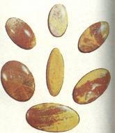 Г) агатовые яшмы с тонким чередованием халцедона, агата и сердолика с яшмовым материалом желтого и бледно-фиолетового цвета.