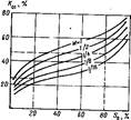 Нефтеотдача зависит от содержания воды в добываемой жидкости и коэффициента М. Имея эти данные для сравнительно однородного коллектора, можно определить нефтеотдачу (в %) по графику (рис. 1.)