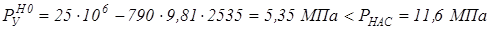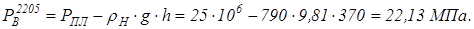 где РПЛ - пластовое давление, в данном случае РПЛ = РНАС=11,6 МПа;