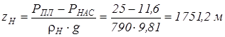 То есть при заполнении скважины пластовым флюидом она будет до определенного уровня заполнена нефтью, найдем этот уровень подставив значение РНАС в выражение (4) получим: