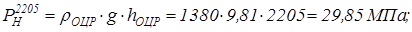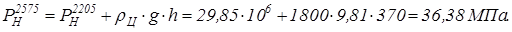 Максимальные наружные избыточные давления возникают при окончании продавки цементного раствора.