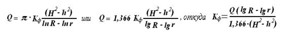 Подставив в формулу Дюпюи числовое значение π = 3,14 и заменив натуральные логарифмы десятичными, получим формулу, более удобную для расчётов: