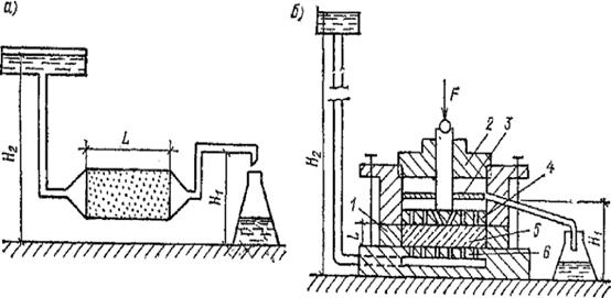 Рис. 5. Схемы установок для определения коэффициента фильтрации а —песка, б — пылевато-глинистого грунта