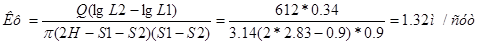 Расчет воды (приток воды с двух сторон) приходящейся на 1п.м. длины канавы равен