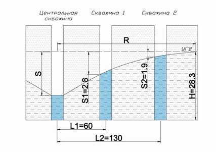 Задание 6 Построить схему и определить коэффициент фильтрации песков, коэффициент водопроводимости водоносного слоя и радиус влияния