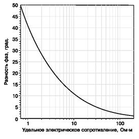 Рис. 3.1. Зависимость разности фаз от удельного электрического сопротивления однородной среды