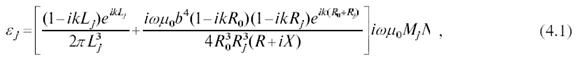 J=J0∙eiωt. Рабочая частота зонда f=ω/2π. Комплексное сопротивление цепи кольца на рабочей частоте R+iX. Активное сопротивление R складывается из потерь в высокоомном проводе и в конденсаторе, включенном в разрыв цепи. Реактивное сопротивление Х= l/ωC-ωL. В этом случае э.д.с., наводимая в j-й измерительной катушке, равна