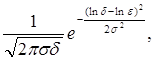 где δ - размер, или сечение, поровых каналов; σ - стандартное отклонение; lnε - среднее значение ln δ.