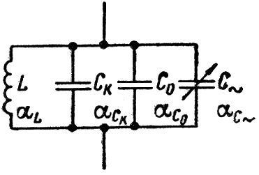 В простой параллельной схеме термокомпенсационного контура, работающего в диапазоне частот (рис. 6.4), можно получить полную компенсацию только в одной точке диапазона.