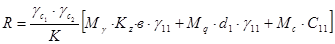 Необходимо обратить особое внимание на следующее положение: условием применения расчета по деформациям является требование, чтобы среднее давление по подошве фундамента от нормативных нагрузок не превышало расчетного сопротивления грунтов основания, определяемого по формуле 7, СНиП 2.02.01-83. Так как изначально по условию здание проектируется без подвала, формула расчетного значения сопротивления грунтов имеет вид: