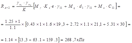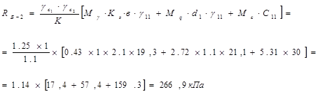 -коэффициент, принимаемый равным 1.1, так как прочностные свойства грунта приняты по табл. 1-3 приложения СНиП 2.02.01-83; |