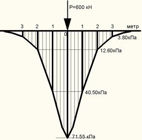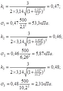 20. Опред. напряжение в грунтовом массиве по каждому слою от действия сосредоточенной силы Р=500кН, при условии, что Z=0,6h (h- мощность слоя), r=0.1Z.