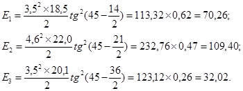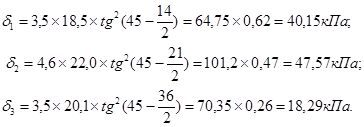 е1=0,87; е2=0,40; е3=0,53; γ1 =18,5кН/м3; γ2 =22,0 кН/м3; γ3=20,1 кН/м3;
