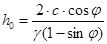 h0=2·5·cos14/18.5·(1-sin14)=9.7/14.02=0.69м;