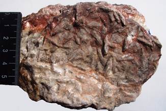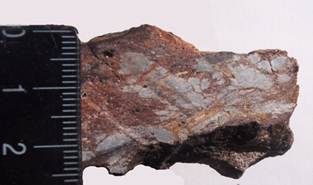3. Образец № Б5. Мусковит-кианитовый сланец. Место отбора: Борисовские сопки (средняя сопка) с.ш. 54° 13´ 53,5´´; в.д. 60° 41´ 00,5´´