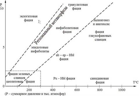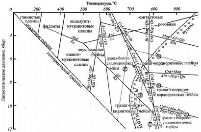 Рис. 21. Минеральные фации метапелитов (по Маракушеву А.А., 2001)