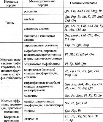 Классификация метаморфических образований по сотаву исходных пород, подвергшихся метаморфизму (по Маракушеву А.А., 2001)