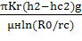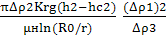 Если эту точку переместить на контур скважины, то в соответствии с обозначениями на схеме имеем z=(h-b)+hc. Решая совместно два уравнения, исключая Р1 и пренебрегая капиллярным давлением РК=РН-РГ, получаем