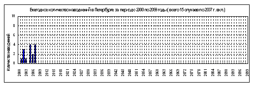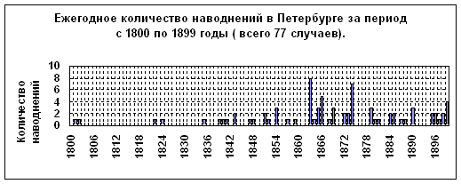 Наводнения в Петербурге крайне нерегулярны: то по нескольку случаев в году, то с перерывами в несколько лет. Они возникают в любое время года и суток, чаще всего в сентябре - декабре (80%), а наиболее редко – в апреле и июле. Около 60% всех наводнений случаются в вечернее и ночное время.