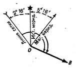 Чтобы избежать ошибок при определении величины и знака поправки направления, нужно пользоваться помещаемой на карте схемой направлений геодезического меридиана, магнитного, меридиана и вертикальной линии координатной, сетки. При точных измерениях переход от дирекционных углов к магнитным азимутам и обратно выполняется с учетом годового изменения магнитного склонения. Сначала определяют склонение магнитной стрелки на данное время (указанное на карте годовое изменение склонения магнитной стрелки умножают на число лет, прошедших после создания карты), затем полученную величину алгебраически суммируют с величиной склонения магнитной стрелки, указанной на карте. После этого переходят от измеренного дирекционного угла к магнитному азимуту по приведенным выше формулам.