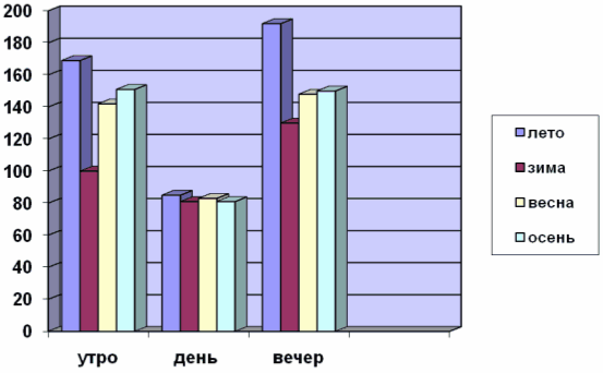 Диаграмма распределения количества автотранспорта по временам года и суток.