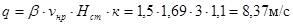 q – удельный расход, м/с