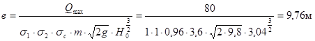 σ2 – коэффициент подтопления водосброса (принимаем равным 1)
