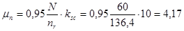 μ – коэффициент пропорциональности, который определяется по таблице в зависимости от частоты вращения электрической машины